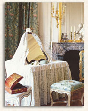 ![]() zoom | The tapestry of the bed is made of green silk, to suit the taste of the Marchioness. |