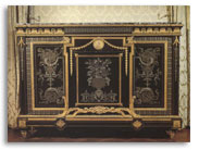 Le meuble est enrichi dapplication en bronze doré, qui en soulignent la structure géométrique.