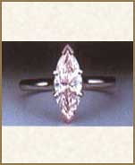 Le coupé à navette, ou marquise, est sûrement un des plus élégants. Il a une forme oblongue, avec un ovale pointu qui sallume par mille lueurs aux extrémités. Il sappelle aussi "Marchise" en honneur de la raffinée Madame de Pompadour. La légenge dit que le coupé à navette fut voulu par Louis XV pour créer un bijou qui eût la forme de la bouche de Mme de Pompadour. |