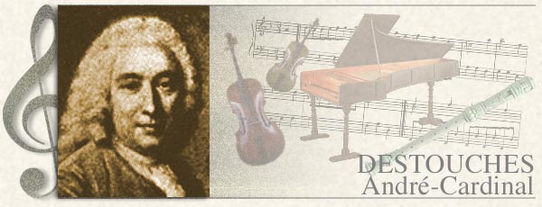 Born in Paris (France) on April 1672; died in Paris (France) on 3 February 1749. Studied with Campra. Superintendent, Paris Opéra, 1713, dir. 1728-30. Best-known work is 3-act opera Issé, heroic pastorale prod. Fontainebleau 1697. It was one of his operas, Omphale (1701), that sparked off the "Querelle des Bouffons". André Cardinal Destouches is the least well-known of Marc-Antoine Charpentier and Jean-Phillipe Rameau, but in his own time he was a highly respected figure on the Parisian musical scene. Louis XIV declared that "never has anyone since Lully given me music I enjoyed so much. Destouches' most popular work was Les Eléments, an opera-ballet he wrote with Delalande in 1721. Destouches was responsible for the dance-music that fills the work, and no less than Louis XV himself danced in its premiere. |