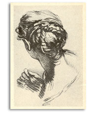 COD: MART 2 TITRE: Tête de femme. DESCRIPTION: Gravure PLACEMENT: PERIODE: DIMENSIONS: cm. NOTES: Le modèle est sûrement Mme de Pompadour. La lèvre inférieure était toujours enflé et rouge parce quelle le mordait en continuation.