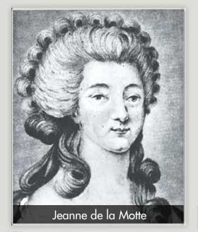 Le circostanze concorsero a favorire e a facilitare l'intrigo. La signora de la Motte incontrò un giorno nel parco del Palazzo Reale una donna bella e g iovane la quale tornava a sedersi ogni giorno al medesimo posto, che somigliava alla Regina come due gocce d'acqua tra loro: aveva gli stessi capelli biondi di Maria Antonietta, gli stessi occhi celesti e lo stesso sguardo infantile. Trattavasi di una modista che si chiamava Nicole Legnay. Le due donne fecero conoscenza, e la de la Motte decise di sfruttare al più presto l'ingenuità della sua nuova amica. La introduce in casa sua,sotto il nome di baronessa d'Oliva, la invita a pranzo e le usa ogni sorta di cortesie. Poi, un bel giorno le dice all'improvviso: La Regina, cara mia, mi ha incaricato di dirti che, se vorrai farle un certo favore, ti rimetterà una somma di 15.000 lire in contanti, e in più un regalo per te d'un valore ancor più ingente. E che cosa dovrei fare? Oh, nulla di speciale. Dovrai soltanto consegnare una rosa e una lettera nel giardino di Versailles a un signore che ti bacerà la mano. Ma cosa può importare tutto questo alla Regina? Sarebbe troppo lungo spiegartelo, mia cara. "Non mi è stato difficile -dirà in seguito la signora de la Motte ai commissari del Parlamento- convincere la mia amica a farlo, trattandosi di una povera sciocca. L'appuntamento vien fissato per la notte dell'11 agosto 1784. Il cardinale, frattanto, viene avvertito. La signora de la Motte, ispirandosi al ritratto di Maria Antonietta esposto al Salone del 1783, provvede di persona a vestire la sua giovane amica. Cala la notte e il gran parco di Versailles è del tutto deserto. Non si ode se non la voce delle acque che piangono nelle vasche di marmo. Il cielo è tenebroso, senza luna nè stelle. La baronessa d'Oliva ha già camminato a lungo scortata dai due de la Motte. Si sono imbattuti in un uomo, scomparso poi nelle tenebre. L'uomo non era altri che Retaux de Villette, il segretario della signora de la Motte.Infine, si fermano tutti presso un boschetto che oggi si chiama il "Boschetto della Regina" . Impaurita, la signorina d'Oliva non osa voltarsi indietro. Tende l'orecchio e non ode che i ciottoli del viale crepitare sotto la pressione d'un passo misterioso. Appaiono tre uomini. Uno di essi si fa avanti, alto e magro, vestito d'una marsina azzurra sotto un lungo mantello e col cappello calato sugli occhi. La signorina d'Oliva viene spinta incontro al misterioso individuo. Frattanto, il Conte e la Contessa de la Motte si sono ritirati, lasciandola, sola. La poveretta trema dalla testa ai piedi,come le foglie degli alberi. La rosa che tiene in mano le sfugge dalle dita. Ha in tasca una lettera che non ha la forza di tirar fuori.L'uomo dal gran mantello si sprofonda in un inchino e le bacia l'orlo della gonna. La poveretta trova la forza di biascicar qualche parola, e al Cardinale par che dica : "Potete sperare che il passato venga dimenticato". Il Cardinale toma ad inchinarsi, riconoscente e rispettoso; e la povera donna, tutta tremante, non ode le parole ch'egli le rivolge. D'improvviso interviene la signora de la Motte che dice col fiato grosso: "Presto, presto: spicciatevi. E' giunta la contessa d' Artois". Il Conte de la Motte s'affretta a trascinar via la signorina d'Oliva, mentre il Cardinale si ritira anche lui per suo conto. Fu questa la curiosa scena del "Boschetto" . Da quel giorno il Cardinale perde la testa. Non è più soltanto fiducioso e ingenuo: è addirittura accecato. La signora de la Motte può permettersi di chiedergli ogni cosa. Egli le obbedirà, docile come un bambino, gonfio il cuore di gioia e di riconoscenza. La signora non tarderà, invero, a sfruttare il suo prezioso vantaggio. Prima della fine d'agosto essa comunica al Cardinale che la Regina gradirebbe una offerta di ben 50 mila lire in favore di una famiglia di nobili decaduti. Il Cardinale non esita a consegnare la somma richiesta. Poi gli viene recapitato un biglietto della Regina, con il quale lo si esorta, nel suo stesso interesse, a ritirarsi per qualche settimana in Alsazia. Rohan parte da Parigi raccomandando al suo fiduciario di soddisfare ogni richiesta di danaro della signora de la Motte. In novembre questa riceve un supplemento di ben 100.000 franchi. Infine, la fortuna è venuta per la signora de la Motte. La piccola mendicante d'un tempo vive ora da gran signora, acquista una casa a Bar-sur-Aube e una villa a Charonne. Mobili in legno dorato, arazzi di gran pregio e oggetti d'arte abbondano in casa sua: frequenta gli antiquari di Versailles, sempre vestita d'abiti elegantissimi. A poco a poco la società che si ritrova in casa sua diventa più brillante. E a chi si stupisce del suo fasto, essa risponde dicendo che le sue condizioni son migliorate per i favori ottenuti dal Re e dalla Regina. L'ambizione della signora non aveva più limiti, ed ormai ella sognava di conquistare Parigi, quella Parigi che l'aveva conosciuta a suo tempo affamata e mendicante. Un amico di casa, Louis François Achet, udendo la signora vantare la propria influenza sulla Regina, le propose un giomo di adoperarsi presso la Sovrana perchè acquistasse dai gioiellieri di Corte la loro meravigliosa collana. "Che collana?" -chiese la signora al colmo dello stupore. Allora l'Achet prese a raccontare la storia. I due gioiellieri della Corona, il Bohmer e .il Bassenge, avevano confezionato una collana meravigliosa del valore di 2.600.000 lire, sperando che la Regina l'avrebbe acquistata. Senonchè, questa ne aveva già rifiutato l'offerta, rispondendo: "Abbiamo più bisogno d'una nave che d'un gioiello". La signora de la Motte aderisce con entusiasmo alla proposta. che le vien fatta. In verità, la fortuna le viene incontro. Essa prega l' Achet di condurle a casa i gioiellieri col tesoro. Come fu rubata la collana Il Cardinale torna a Parigi il 5 gennaio del 1785. Il 21 la Contessa si precipita dai due gioiellieri e dice loro che, forse, fra qualche giorno, un gran signore a