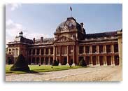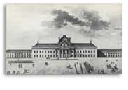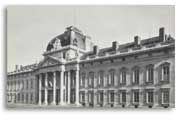 Nel 1750 il maresciallo de Saxe amico di Mme de Pompadour,in seguito anche all'esperienza della guerra d'indipendenza d'Austria, rileva che in francia manca una vera e propia formazione professionale nei reggimenti reali. 24 Giugno 1751 Primo progetto di massima 13 settembre 1751 Primi lavori di scavo 1752 Costruzione delle strutture del cantiere (Laboratori e abitazioni per gli operai) 1754 Termine dei fabbricati dell'infermeria Fine 1755 Terminata la cappella degli allievi Pasqua 1756 Apertura della scuola militare nei fabbricati provvisori 1760 Abbandono del progetto di Gabriel inseguito all'apertura del "Collège Royal de la Flèche" 1764 Morte di Mme de Pompadour 1765 Secondo progetto di Gabriel 1766 Termine della realizzazione del" Champ de Mars". Terzo progetto di Gabriel: si pensa di tornare al progetto iniziale 1768 Ultimo progetto l'efdificio torna alle dimensioni originali 5 Luglio 1768 Cerimonia di posa , il re posa la prima pietra della cappella 1773 Viene terminata la cappella 1780 La scuola militare acquisisce il suo aspetto attuale con l'abbattimento delle costruzioni che ne coprivano la facciata. |