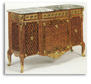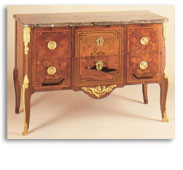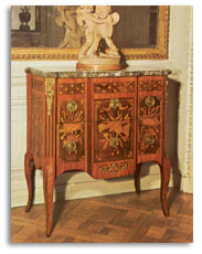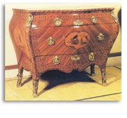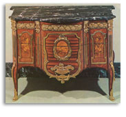 La linea é ancora di stile Luigi XV, le maniglierie sono neoclassiche gli intarsi a mosaico, con i cubi disposti a diamante, si vedranno in molti mobili successivi, nel periodo Luigi XVI.